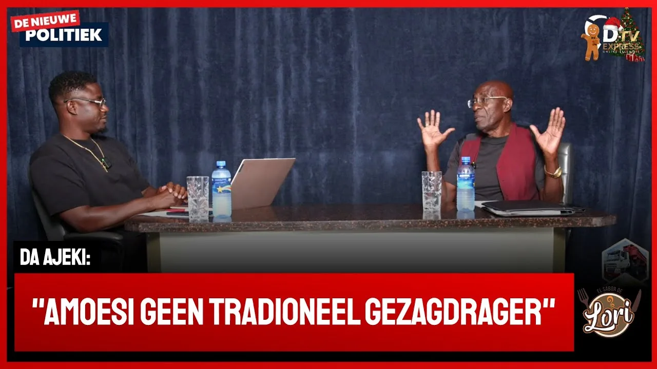 Jerrel Harderwijk in gesprek met Kabiten Da Ajeki, die de uitlatingen van hoofdkapitein Amoesi in Suriname weerspreekt.